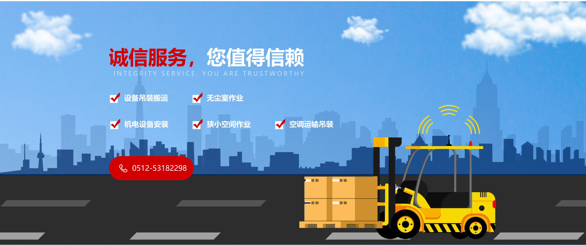 一家設備起重、吊裝、移位、搬運、安裝、就位、找平、大型廠房設備搬遷、裝卸為一體的企業。